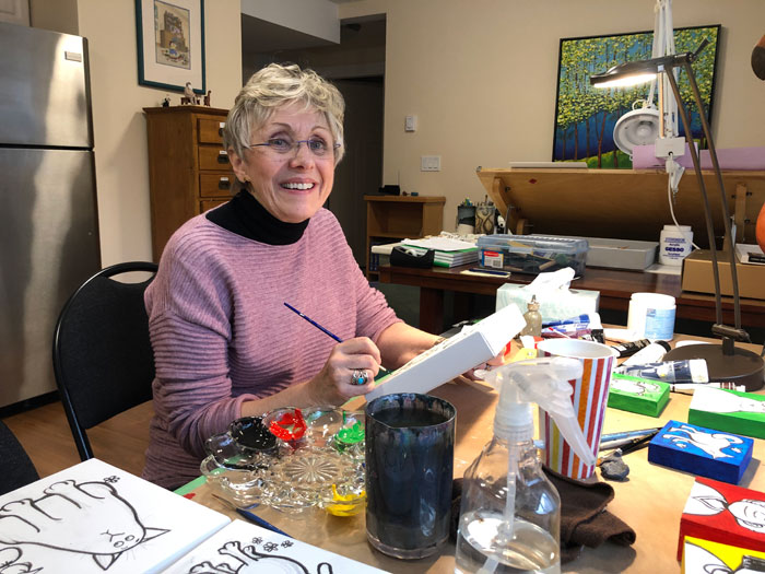 She's been enjoying time with her granddaughter and grandson, travelling, and doing many other things, including painting with acrylics! You can see some of her art below.